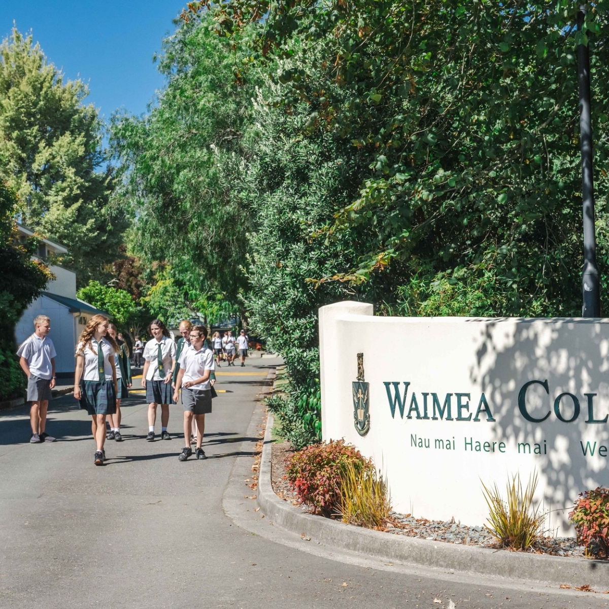 Waimea College ตั้งอยู่ในเมือง Nelson ทางตอนเหนือของเกาะใต้ (South Island) ประเทศนิวซีแลนด์ เมืองที่ขึ้นชื่อเรื่องอากาศอบอุ่น แสงแดดสดใส และธรรมชาติอันงดงามรายล้อม ทั้งภูเขา ป่าไม้ และชายทะเล ทำให้สภาพแวดล้อมเหมาะกับการเรียนรู้และพัฒนาศักยภาพของนักเรียนในทุกด้าน